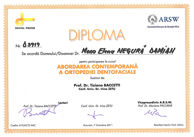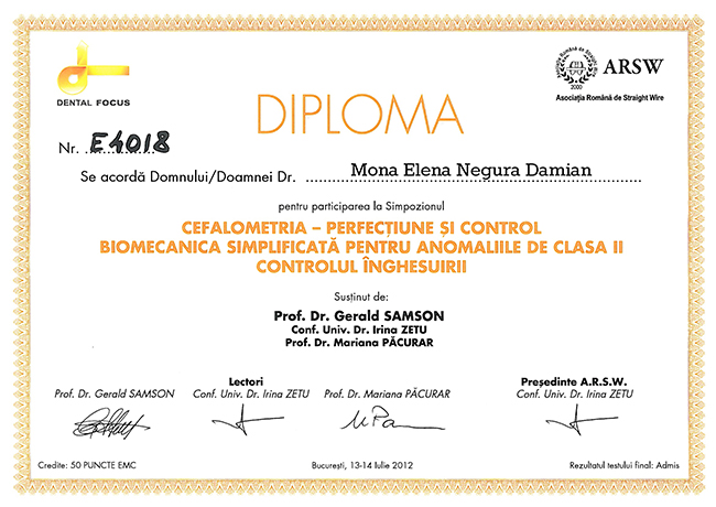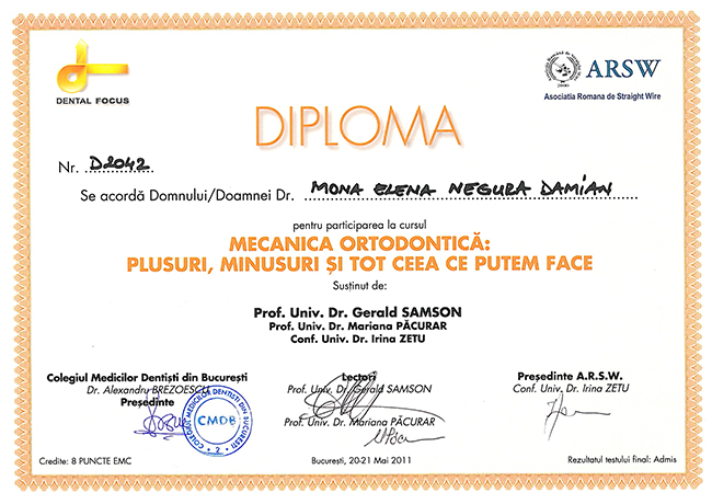 Un medic profesionist este un medic informat. Din respect pentru pacienți, pentru a ține pasul cu cele mai noi tendințe ȋn ortodonția globalǎ și cu cele mai moderne metode de tratament, am participat și continui sǎ iau parte la cele mai importante conferințe și congrese internaționale cu tematicǎ ortodonticǎ, susținute de somitǎți ȋn domeniu (SUA, Marea Britanie, Germania, Italia, Franța, America de centralǎ și de sud, Africa de sud, Coreea).